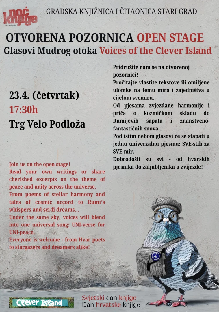 Povodom Noć knjige pozivamo vas na otvorenu pozornicu na Trgu Velo Podloža!